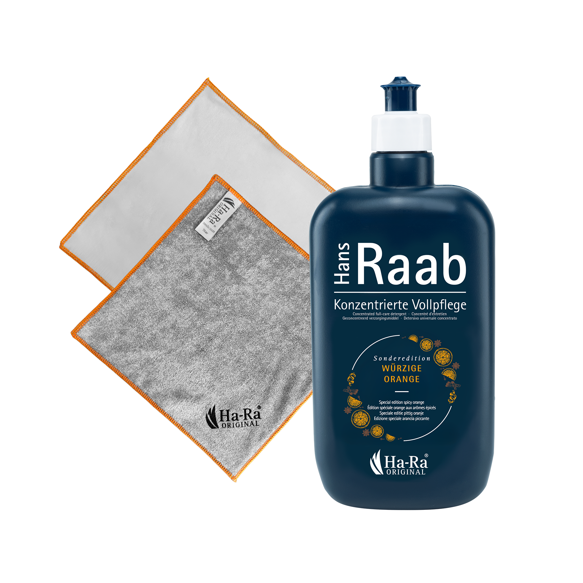 Nur vom 01. - 31. Oktober gibt es das Clean & Care-Set, bestehend aus der Hans Raab Konzentrierten Vollpflege im Sonderduft "Würzige Orange" und dem Clean&Care-Tuch (limited edition)! Jetzt Angebot sichern!