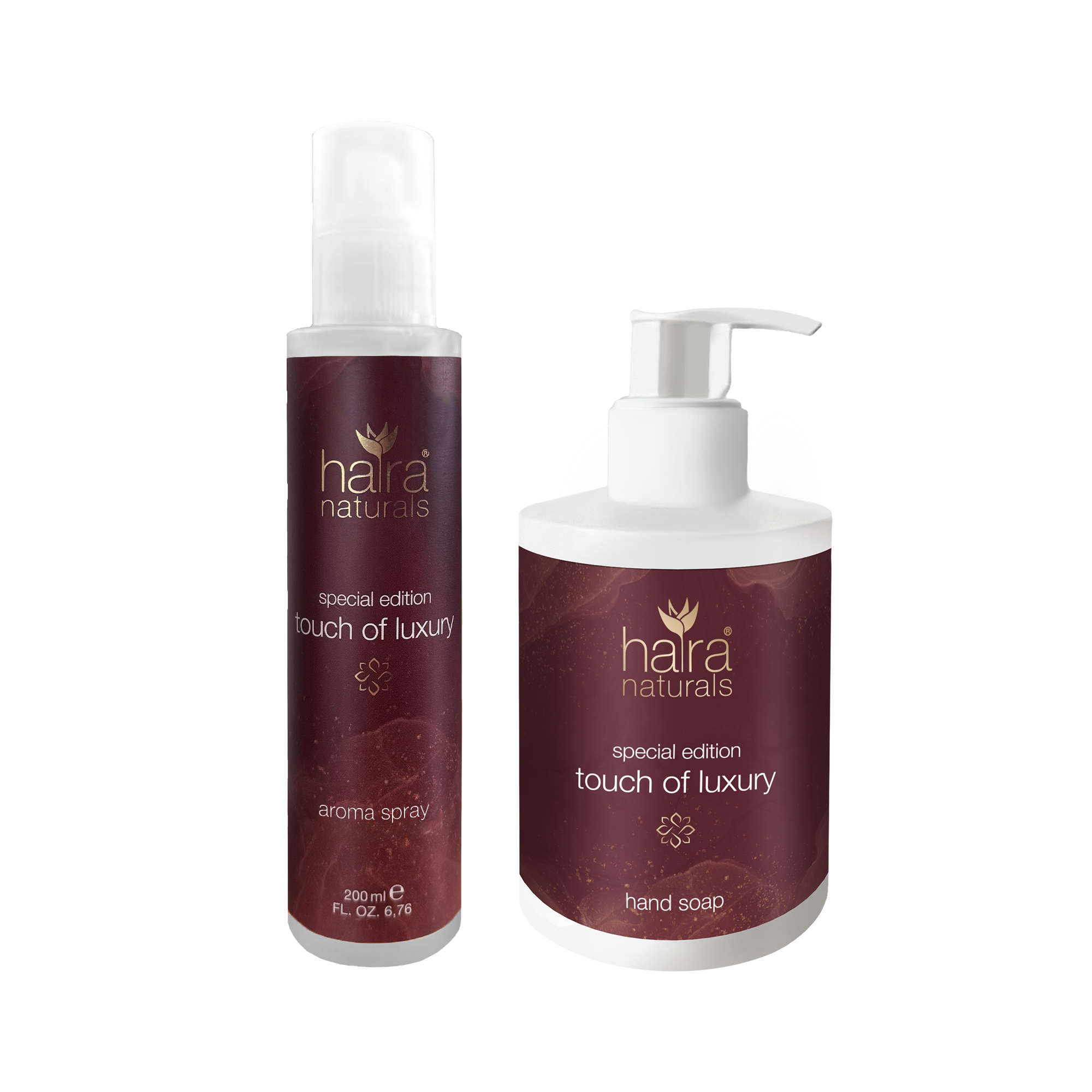 Dieses Geschenke-Set mit der edlen hand soap und dem eleganten aroma spray touch of luxury verwöhnt Deine Sinne.