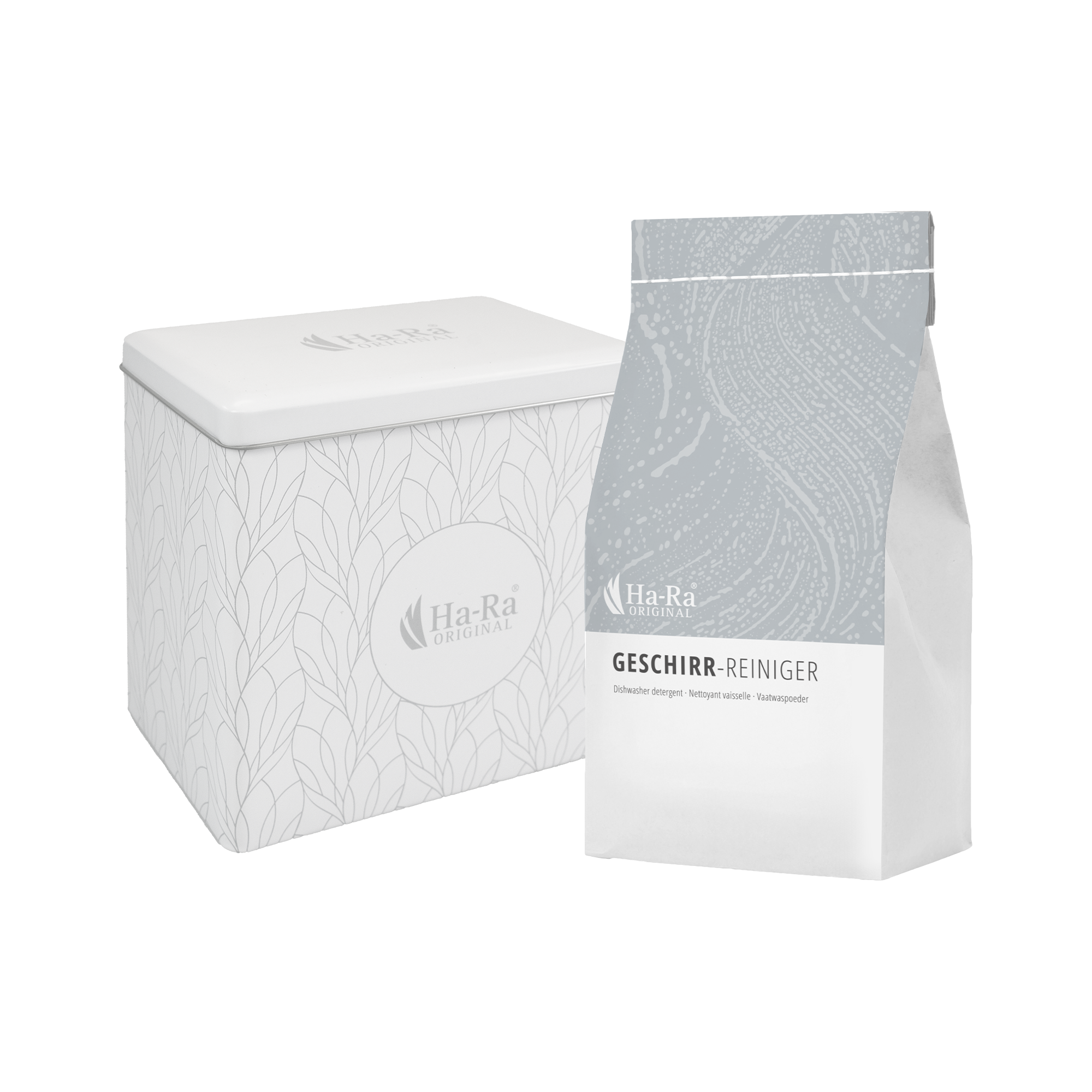 Poudre lave-vaisselle avec boîte de rangement